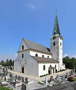 Der ursprünglich einschiffige romanische Quaderbau aus dem 13. Jahrhundert wurde im 14. Jahrhundert zur dreischiffigen Basilika erweitert. Von 1695 bis 1698 wurde die Kirche barockisiert, möglicherweise nach Plänen von Jakob Prandtauer.