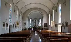1963 wurde der Innenraum nach Plänen von Norbert Ender um eine Fensterachse verlängert und zwei übereinander liegende Emporen aus Beton eingebaut. Das historistische Inventar wurde zur Gänze entfernt und der Innenraum neu gestaltet, u. a. mit Glasfenstern von Konrad Honold.