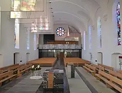 Der Schwerpunkt des Umbaus war die Verschiebung des Altars zur Mitte des Langhauses hin mit veränderbaren Details, so dass die Messe je nach Bedarf in jede Himmelsrichtung gelesen werden kann. Die bestehenden Kirchenbänke flankieren nun den Altar von drei Seiten.