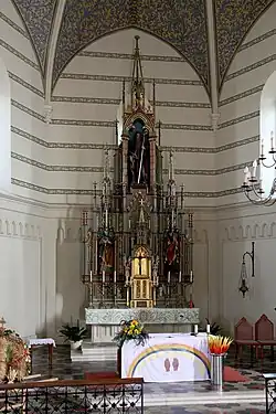 Die Kirche hat eine neogotische Einrichtung.