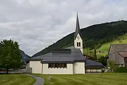 1446 wird der Bau einer Kirche erstmals urkundlich erwähnt, die dem Stift St. Gallen unterstellt war. Ab 1464 gehörte sie zur Abtei Mehrerau, gleichzeitig erfolgte die Pfarrerrichtung. 1793 wurde ein neuer Kirchenbau von Georg Mathis errichtet. Nach einem Brand wurde sie 1870 nach Plänen von Josef Willam neu gebaut und 1875 geweiht. 1903 wurde der Turm erhöht. In den Jahren 1980 bis 1982 wurde die Kirche mit Ausnahme des Turmes durch die Architekten Hermann Keckeis und Vonier vollständig neu gebaut.