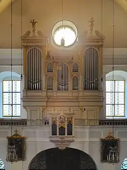 Die Orgel ist in ein Gehäuse in Formen der Neorenaissance eingebaut; sie wurde 1898 von Johann M. Kauffmann errichtet.