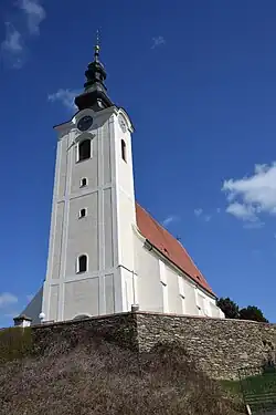 Die Pfarrkirche wird im Jahre 1438 urkundlich genannt und hat einen gotischen Chor aus dem 15. Jahrhundert. Das Kirchenschiff wurde barockisiert. Im massiven Untergeschoß des hohen Westturmes werden Reste des Mauerwerkes der 1289 erwähnten Wehrkirche Niklasturm angenommen, das Obergeschoß mit Zwiebelhelm ist aus dem Jahre 1788. Am Kirchturm sind Römersteine mit bemerkenswerten Reliefs. Im Jahre 1975 wurde nordseitig eine Aufbahrungshalle angebaut.