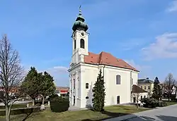 Eine Kirche ist aus 1429 urkundlich belegt und wurde 1783 wiedererrichtet. Bis 1782 war die Kirche der Kartause Mauerbach inkorporiert. Der Längszentralbau wurde von 1742 bis 1746 errichtet.
