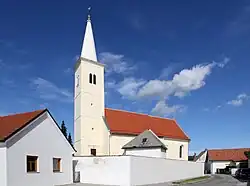 Im Westen ist der Kirchturm über quadratischem Grundriss mit steinernem Turmhelm aus dem 17. Jahrhundert dem Kirchenschiff vorgestellt. Die romanische Nordseite des Kirchenschiffs besteht aus Quadermauerwerk. Der im 15. Jahrhundert entstandene Chor hat einen Fünfachtelschluss. Nach Norden schließt an den Chor die Sakristei an, nach Süden an das Kirchenschiff ein Zubau, beide rezent. An der Südwand der Kirche befindet sich ein Epitaph für Georg Tarnoczy († 1683) und dessen Gattin († 1684).