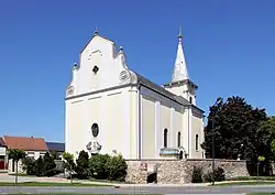 Eine mittelalterliche Pfarre wurde 1527 urkundlich genannt, war später zeitweise evangelisch, und wurde 1638 wieder errichtet. Der mittelalterliche Kirchenbau wurde zwischen 1674 und 1680 renoviert und brannte 1683 im Türkenkrieg mit dem hölzernen Turm nieder. Um 1696 erfolgte ein Turmneubau aus Stein, die Kirche wurde 1720 neu erbaut. 1935 wurde die Kirche renoviert. Die Kirche wurde 1953, 1959/1960, 1966 und 1968 restauriert.