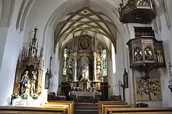 Die Kirche hat ein einschiffiges und dreijochiges Langhaus. Darüber ist Netzrippengewölbe. Das westlichste Joch stammt aus der Erweiterung am Anfang des 20. Jahrhunderts. Der dreijochige Chor ist etwas eingezogen und endet im 3/8-Schluss.