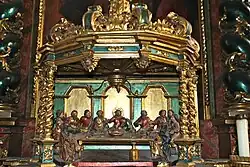 Der Tabernakel aus dem Anfang des 18. Jahrhunderts ist als doppelstöckiger Tempelbau ausgeführt, in dem sich ein drehbarer Schrein verbirgt. In einem Pavillon aus gedrehten kleinen Säulen ist das letzte Abendmahl dargestellt.