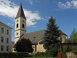 Die Pfarrkirche St. Stephan befindet sich im Nordosten der Marktsiedlung an einer Geländestufe über dem Fluss Lainsitz.