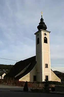 Vom romanischen Vorgängerbau des 13. Jahrhunderts sind die Mauern des Langhauses erhalten. Langhaus, Chor und die Nordkapelle wurden in der ersten Hälfte des 14. Jahrhunderts umgebaut, die Wölbung des Nordschiffes erfolgte im Ende des 15. Jahrhunderts, die Wölbung des Südschiffes um 1630, die Holzwölbung des Mittelschiffes im dritten Viertel des 18. Jahrhunderts. Der Turm wurde im ersten Drittel des 18. Jahrhunderts erbaut, die ehemalige Uhr nannte 1736. Die Kirche wurde innen 1897, 1905, außen 1949, 1955, und von 1974 bis 1977 restauriert und verändert.