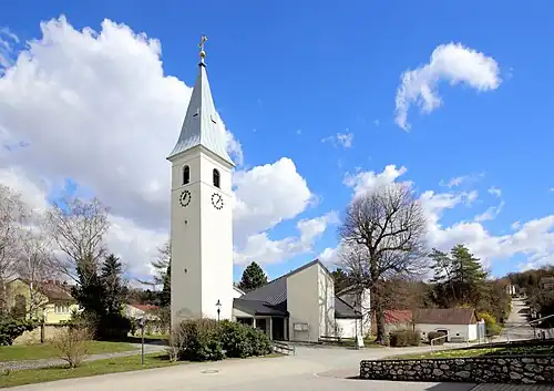 Die Pfarre wurde vermutlich 1207 gegründet. Laut einer Urkunde wurde 1784 eine neue Kirche errichtet. Das Gotteshaus wurde 1971 nach Plänen des Architekten Erwin Plevan unter Einbezug des Kirchturmes vom Vorgängerbau errichtet und im selben Jahr eingeweiht.