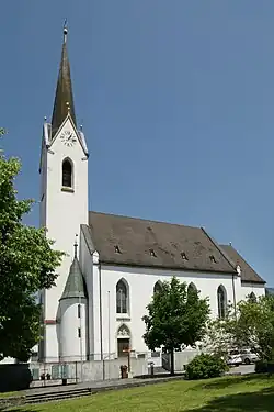 Die ursprüngliche Kapelle aus dem Jahre 1638, 1640 geweiht, war eine Filiale der Liebfrauenbergkirche in Rankweil, und wurde im Jahre 1708 zur Pfarrkirche erhoben. Von 1875 bis 1876 erfolgte ein Neubau nach den Plänen des Architekten Friedrich von Schmidt durch den Baumeister Fidel Kröner.