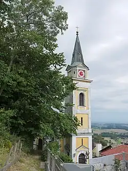Eine gotische Kirche wurde 1477 urkundlich genannt. 1702 erfolgte mit Leonhard Endthofer eine bauliche Erweiterung. 1729 wurde die Kirche wiederum mit Johann Michael Prunner stark erweitert und umgebaut. Nach einem Brand 1864 erfolgten Umbauten. Der Turm erhielt 1867/1868 einen Spitzhelm.