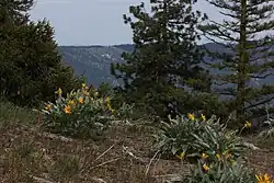 Balsamorhiza sagittata ist beispielsweise ein Element der Great Basin Florenprovinz.[2] Sie gedeiht meist in Höhenlagen von 900 bis 2500 (100 bis 3000) Meter. Sie kommt in der östlichen, Hohen Kaskadenkette, in der Hohen Sierra Nevada bis zu den Rocky Mountains und Black Hills vor.[2][3]