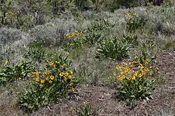 - ↑ a b c d e f g h i j k Jack McWilliams, 2002: Balsamorhiza sagittata - Datenblatt bei FEIS = Fire Effects Information System, online. U.S. Department of Agriculture, Forest Service, Rocky Mountain Research Station, Fire Sciences Laboratory (Producer).