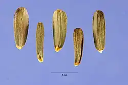 Die glatte, kahle, vierkantige Achäne[1] ist bei einer Länge von 7 bis 9 Millimeter länglich. Es ist kein Pappus vorhanden.[2][3]