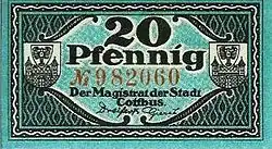 - ↑ Die Bezeichnung Pfenning diente in diesem Fall zur Abgrenzung zum Pfennig von vor 1821, als der Taler noch 24 (Gute) Groschen = 288 Pfennig galt und nicht wie ab 1821 30 Silbergroschen = 360 Pfenning.