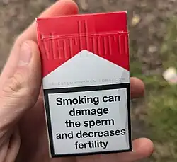 Beispiel für den vorgeschriebenen Warnhinweis auf Zigaretten der Marke Marlboro Red
