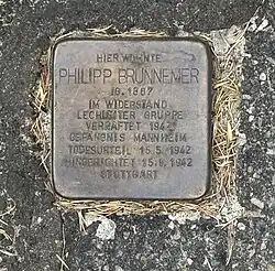 - Vor dem Philipp-Brunnemer-Weg 3 in der Mannheimer Gartenstadt wurde zu seinem Gedenken ein Stolperstein verlegt.[4]