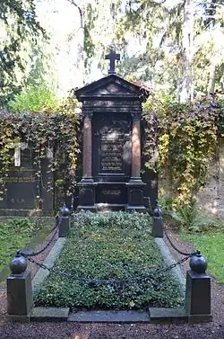 Sein Grab (Gewann D adM 534) auf dem Hauptfriedhof Frankfurt steht unter Denkmalschutz.