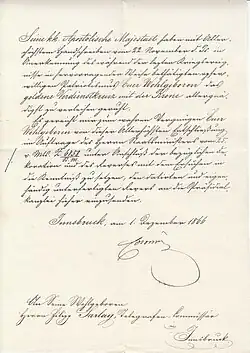 - ↑ Innsbrucker Nachrichten: 11. November 1869, Nr. 256, S. 6.