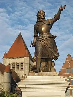 Statue der Christine de Lalaing im Carnaval de Tournai, 22. Tage vor Ostern, am 2. April 2011
