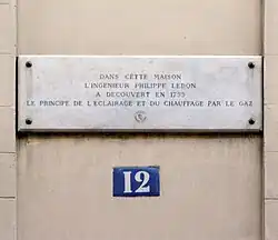Gedenktafel für Philippe Lebon am Haus Nr. 12 rue Saint-Louis-en-l’Île in Paris