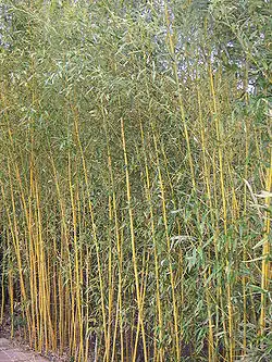 • Goldrohrbambus (Phyllostachys aurea Rivière & C.Rivière): Sie kommt ursprünglich von Fujian und Zhejiang bis Vietnam vor.[3]