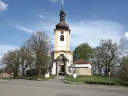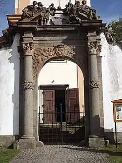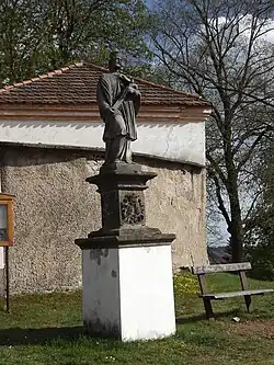 - Alter Friedhof, er wird von einer Mauer umgeben. Der Eingang zum Friedhof erfolgte durch ein barockes Säulenportal aus dem Jahre 1691 mit dem Wappen der Dubsky von Wittenau, das sich ursprünglich im Kloster Pičín befand und nach dessen Aufhebung an den Friedhofseingang versetzt wurde. Zu Seiten des Eingangs zur Kirche stehen die 1708 geschaffenen Statuen der hll. Johannes von Nepomuk und Antonius von Padua, die ursprünglich im Kloster gestanden waren.