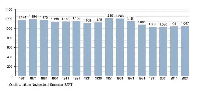 - ↑ Bilancio demografico e popolazione residente per sesso al 31 dicembre 2024. ISTAT. (Bevölkerungsstatistiken des Istituto Nazionale di Statistica, Stand 31. Dezember 2024).