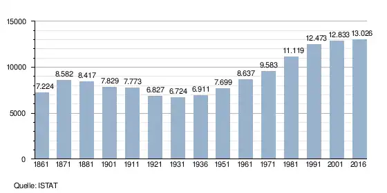 - ↑ Bilancio demografico e popolazione residente per sesso al 31 dicembre 2024. ISTAT. (Bevölkerungsstatistiken des Istituto Nazionale di Statistica, Stand 31. Dezember 2024).