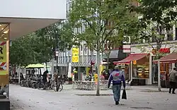 Zumeist fünf- und sechsgeschossige, teils verklinkerte, Geschäfts- und Bürohäuser begleiten die Straße: