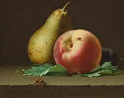 - New York, Sotheby’s, 24. Oktober 1996: Poire, pêches et prunes sur un entablement, huile sur toile, 9 200 $