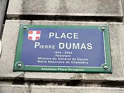 Pierre Dumas zu Ehren wurde der bisherige Place Octogone in Chambéry 2005 in Place Pierre Dumas umbenannt.