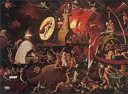 - Die Hölle (Jüngstes Gericht?), 1570, Öl auf Holz, 86 × 82 cm, Madrid, Museo del Prado