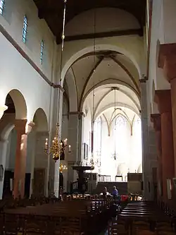 König Heinrich IV. erhielt hier 1076 die Nachricht von seiner Bannung während des Investiturstreits. Am selben Tag wurde die Kirche durch einen Blitzeinschlag, der einen Brand auslöste, beschädigt. 1148 und 1279 wurde die Kirche abermals von Bränden heimgesucht. Um 1370 wurde der Chorraum durch den Einbau von Kreuzgratgewölben und Spitzbogenfenstern im gotischen Stil verändert, gleichwohl konnte die Kirche ihren romanischen Charakter insgesamt bewahren.
