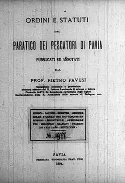 - Pietro Pavesi: Ordine e statuti del paratico dei pescatori di Pavia. Fratelli Fusi, Pavia 1894 (italienisch, beic.it).
