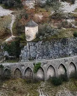 Der Pigeonnier de Laguille (deutsch: Taubenturm von Laguille) steht auf einer Felsenflanke über dem Fluss Alzou, die südlich gegenüber von Rocamadour liegt, einer französischen Gemeinde im Département Lot in der Region Okzitanien. Der runde Turm aus Bruchsteinmauerwerk lässt sich nicht datieren, die ortstypische Bauweise wurde vom 16. bis 19. Jahrhundert verwendet. Die Ausführung des Gesims legt eine frühe Datierung nahe, möglicherweise in das 16. Jahrhundert.[1]