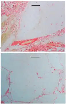 - ↑ R. Lattouf, R. Younes, D. Lutomski, N. Naaman, G. Godeau, K. Senni, S. Changotade: Picrosirius Red Staining: A Useful Tool to Appraise Collagen Networks in Normal and Pathological Tissues. ( vom 9. März 2016 im Internet Archive) In: Journal of Histochemistry & Cytochemistry. 62, 2014, S. 751, doi:10.1369/0022155414545787. (Website nicht mehr aufrufbar)