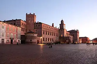 Palazzo dei Pio, Carpi, Eingang zum Cortile d'onore mit Turm von 1577 -