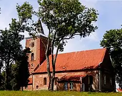 Bei der heutigen Johannes dem Täufer gewidmeten Kirche handelt es sich um einen Backsteinbau. Von alter Ausstattung sind noch Teile des Hauptaltars um 1700 sowie Teile der Seitenaltäre aus dem zweiten Hälfte des 19. Jahrhunderts erhalten. In der Kirche befindet sich ein Taufbecken aus Granit aus dem 15. Jahrhundert.