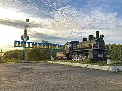 Ortseingang mit Eisenbahn-Denkmal