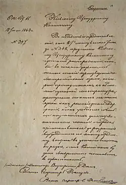 Am 30. Juli 1863 erließ er das Walujew-Zirkular mit dem viele Veröffentlichungen (religiöse, pädagogische und Literatur, die für die Grundschulbildung der Bürger empfohlen wurden) sowie Belle Lettres Werke in ukrainischer Sprache verboten wurden.[2]