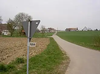 Plößhöfe bezeichnet einen Weiler, dessen etwa sieben Gebäude verstreut auf der Hochfläche nördlich der Verbindungsstraße von Irlach nach Stein liegen.[2]