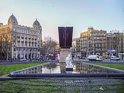 Die Plaça de Catalunya (deutsch Katalonienplatz) ist ein Platz im Zentrum Barcelonas. Da er das Bindeglied zwischen der Altstadt (Barri Gòtic) und der Neustadt (Eixample) darstellt, nimmt er als Knotenpunkt eine zentrale Rolle ein und wird von den Einwohnern dieser Stadt und ihrer Umgebung als das Zentrum Barcelonas betrachtet.[1] Charakteristisch für diesen Platz ist sein als sternförmige Figur aus blauen, roten und grauen Fliesen gestalteter Untergrund und die Verkehrslärm abschirmende Bepflanzung mit Springbrunnen, die den Platz umgibt.