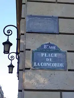 Straßenschild Place de la Concorde, darüber das ehemalige Schild «Place Louis XVI»