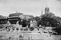 Als 1871 der begüterte russische Ingenieur, Weltreisende und Mäzen Gabriel de Rumine, Mitglied der Société Vaudoise des Sciences Naturelles, Zofinger und seit 1862 Ehrenbürger von Lausanne[7], testamentarisch seiner Stadt die Summe von 1,5 Millionen Schweizer Franken für den Bau eines öffentlichen Gebäudes vermacht hatte, beschlossen die Stadtbehörden, mit diesen Mitteln und zusammen mit dem Kanton Waadt einen neuen Hauptsitz für die Universität Lausanne zu errichten.[8] Nach Plänen des Architekten Gaspard André aus Lyon entstand auf der Ostseite des Marktplatzes das Palais de Rumine, das am 3. November 1902 eingeweiht wurde und bis heute die Place Riponne architektonisch dominiert. Heute befinden sich darin eine Bibliothek und mehrere kantonale Museen.