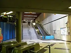 In 23,8 Metern Tiefe befindet sich die Bahnsteigebene mit zwei Seitenbahnsteigen. Die Entfernungen zu den benachbarten Stationen, jeweils von Stationsende zu Stationsanfang gemessen, betragen 988,47 Meter bis Namur und 451,10 Meter bis Côte-Sainte-Catherine.[2] Es bestehen Anschlüsse zu drei Buslinien und zwei Nachtbuslinien der Société de transport de Montréal.