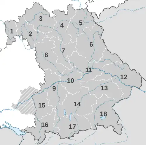 Die Grenzen der bayerischen Planungsregionen folgen im Wesentlichen den Kreisgrenzen. Nur zwei Landkreise werden durch Regionsgrenzen durchschnitten: