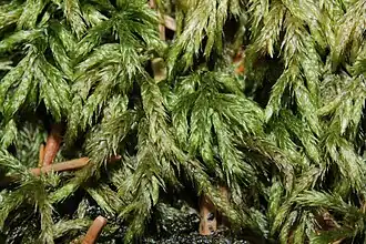 Die mäßig kräftigen bis kräftigen Pflanzen sind gelb- bis dunkelgrün. Die primären Stämmchen sind kriechend, die sekundären aufsteigend und büschelig bis bäumchenförmig verzweigt. Die Pflanzen bilden dem Substrat anliegende, lockere, glänzende, etwas starre Rasen mit meist nach unten gebogenen Ästen. Die am Stämmchen herablaufenden, locker dachziegeligen bis abstehenden Blätter sind dreieckig eiförmig, lang zugespitzt und nicht oder schwach längsfaltig. Die Ränder sind gesägt. Die Blattrippe endet in der oberen Blatthälfte meist als auf der Blattunterseite austretender Dorn. Astblätter sind etwas kleiner und schmäler, die Ränder schärfer gesägt, sonst den Stämmchenblättern ähnlich. Die Zellen der Blattmitte sind länglich wurmförmig, 25 bis 58 Mikrometer lang und mäßig dickwandig, am Blattgrund kürzer, breiter, dickwandig, getüpfelt und bilden hier ein dunkles Band.